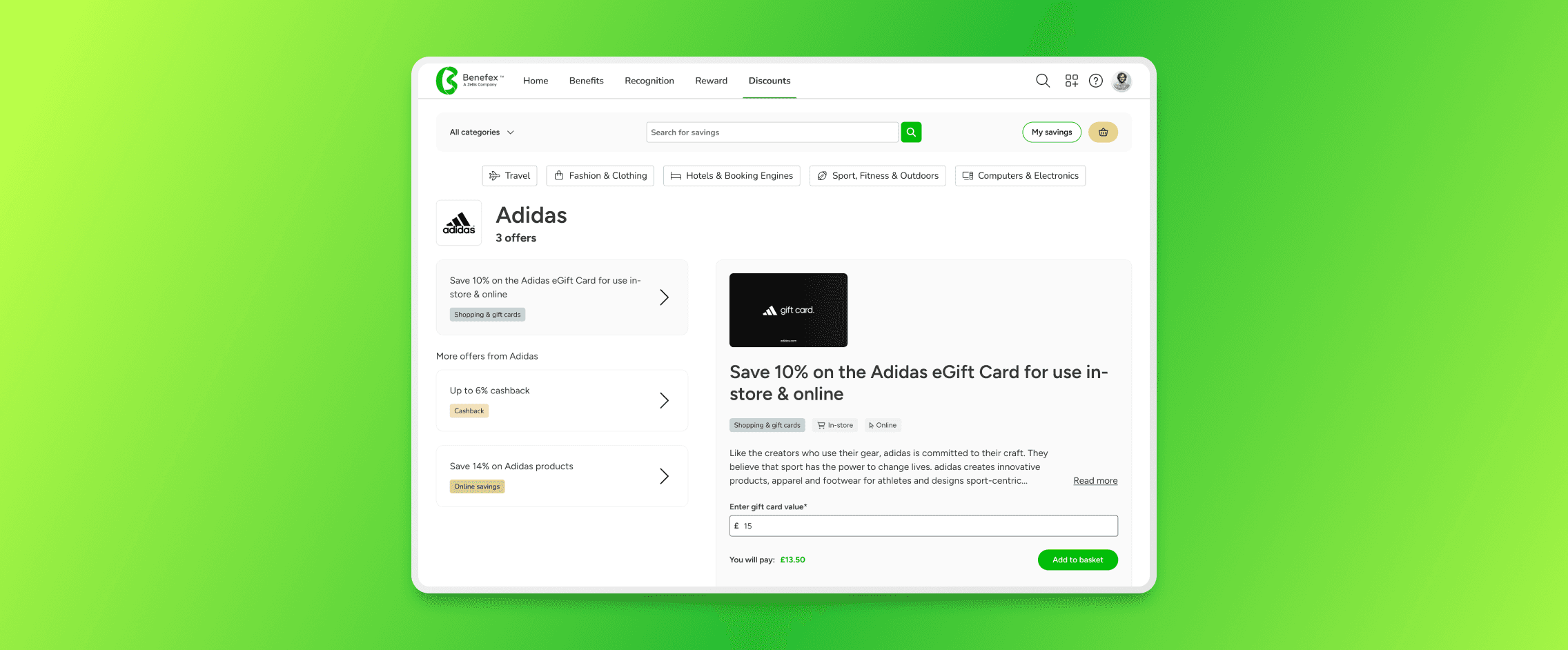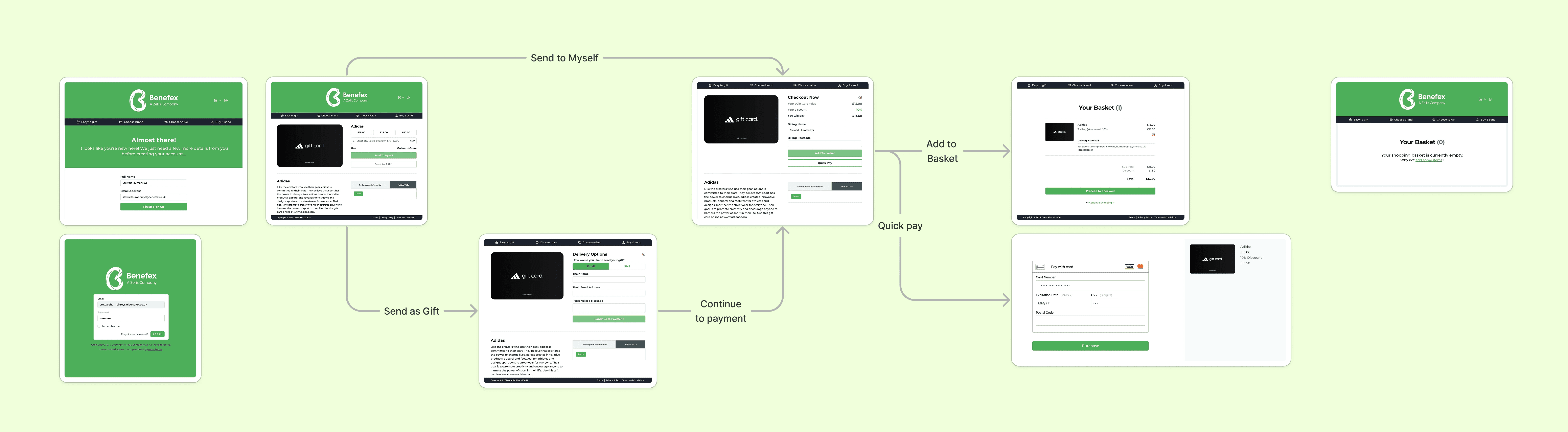 The goal was to migrate the gift card checkout journey from a third party provider onto the Benifex Discounts product. This would allow us to accurately record purchases and generate extra revenue for the business.